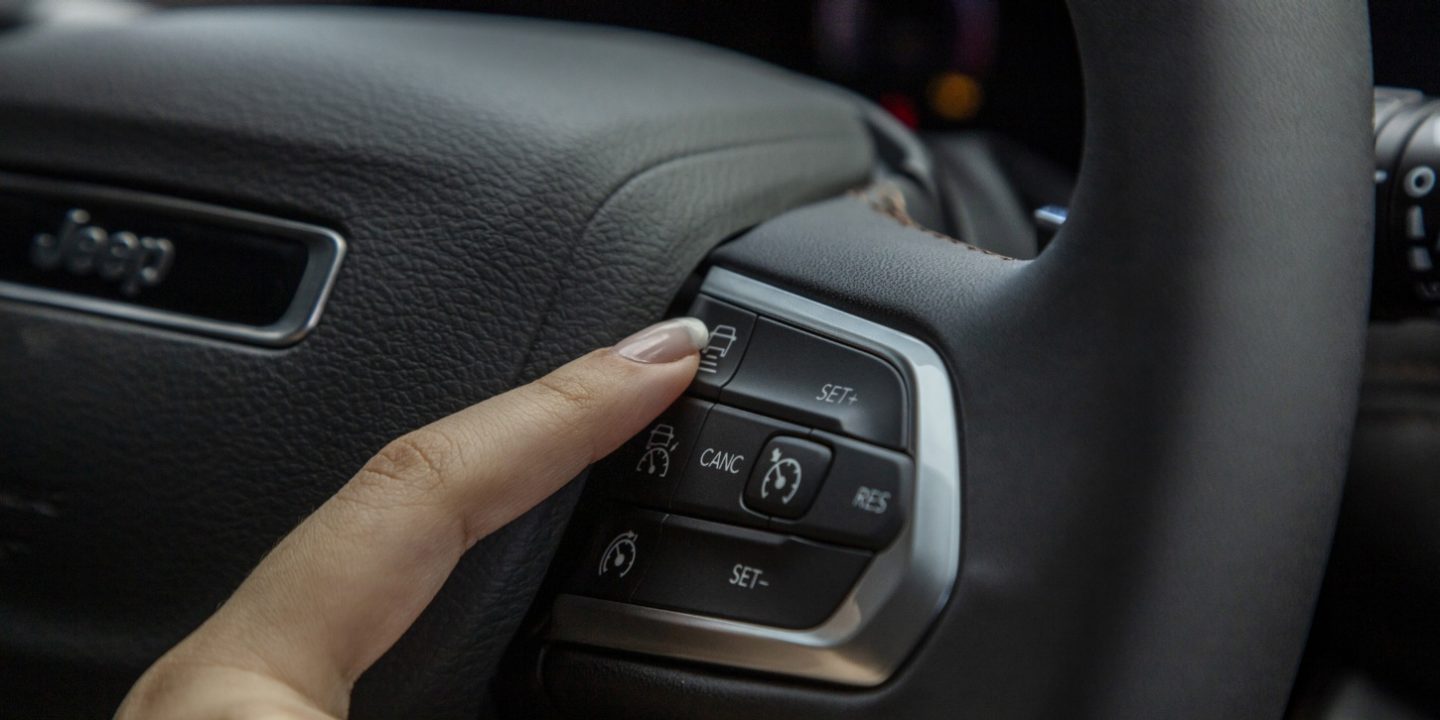 Choose a speed and the distance you want to maintain from vehicles, and the Jeep® Commander will take care of the rest. If the sensors detect an obstacle, such as a slower car ahead, it will automatically adjust the speed.